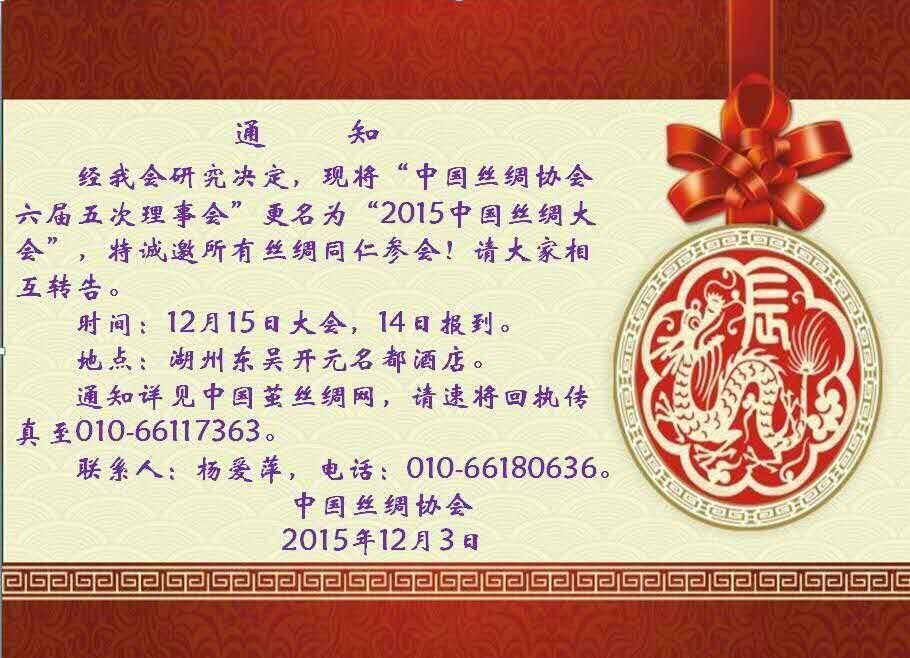 “中國絲綢協(xié)會六屆五次理事會”更名為“中國絲綢大會” 誠邀所有絲綢同仁參與