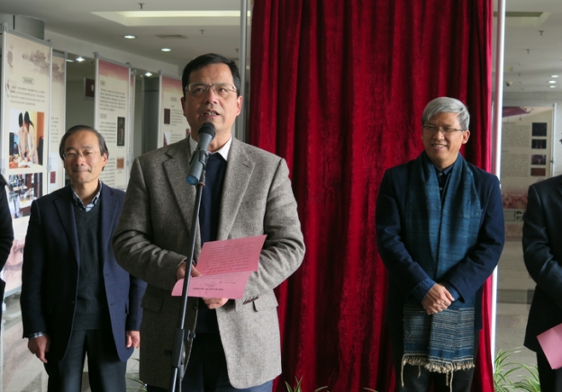 開幕式由校圖書館館長胡天生主持,中國絲綢博物館館長趙豐、社教部主任俞敏敏、浙江理工大學副校長陳建勇、材料與紡織學院書記祝成炎、材料與紡織學院副書記馮飛蕓、校保衛(wèi)處副處長汪小明等人出席了開幕式。陳建勇與趙豐先后在開幕式上致辭。