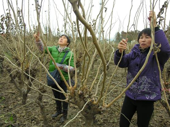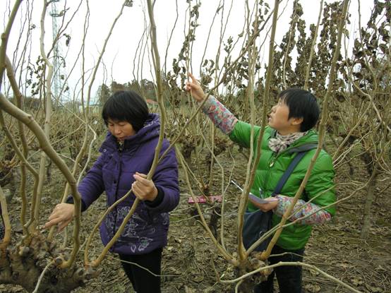 圖為秀洲區(qū)的蠶桑技術(shù)人員正在調(diào)查桑樹條長、芽數(shù)與桑條粗壯度(直徑)