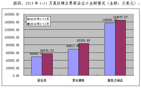 表四:2015年1-11月真絲綢商品主銷市場出口情況