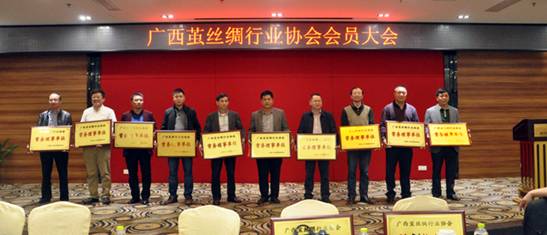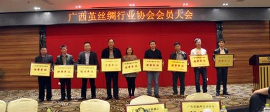 大會選舉廣西絲綢(集團)有限公司總經(jīng)理蘭樹思擔任協(xié)會第三屆理事會會長,廣西桂合集團有限公司、廣西蠶業(yè)技術(shù)推廣總站、廣西宜州市宏基繭絲有限公司等11家單位擔任副會長;橫縣桂華繭絲綢有限責任公司、廣西大宗繭絲交易市場有限公司、廣西宜州茂源繭絲有限公司等11家單位擔任常務(wù)理事;廣西江緣繭絲綢有限公司、鹿寨貴盛繭絲工貿(mào)有限公司、廣西立盛繭絲綢有限公司等11家單位擔任理事。選舉覃鋼同志為協(xié)會第三屆理事會秘書長。