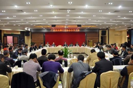 2016年3月18日,廣西繭絲綢行業(yè)協(xié)會會員大會在南寧隆重召開。本次大會主要議程是換屆選舉,同時就當前市場行情走勢進行交流和分析研判。80多家會員單位領(lǐng)導(dǎo)參加會議,自治區(qū)繭絲辦田寧主任和工信委綜合處石紅艷處長到會指導(dǎo)。