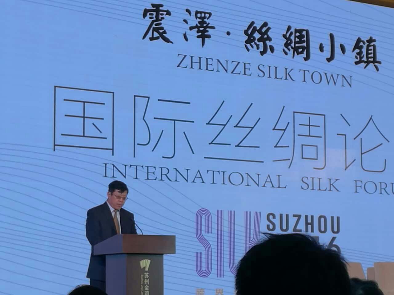 4月22日下午,都市絲綢國(guó)際論壇在蘇州金雞湖國(guó)際會(huì)議中心隆重舉辦。中國(guó)絲綢協(xié)會(huì)楊永元會(huì)長(zhǎng)作開幕詞,吳江市震澤鎮(zhèn)黨委書記陸斌代表絲綢小鎮(zhèn)致辭。