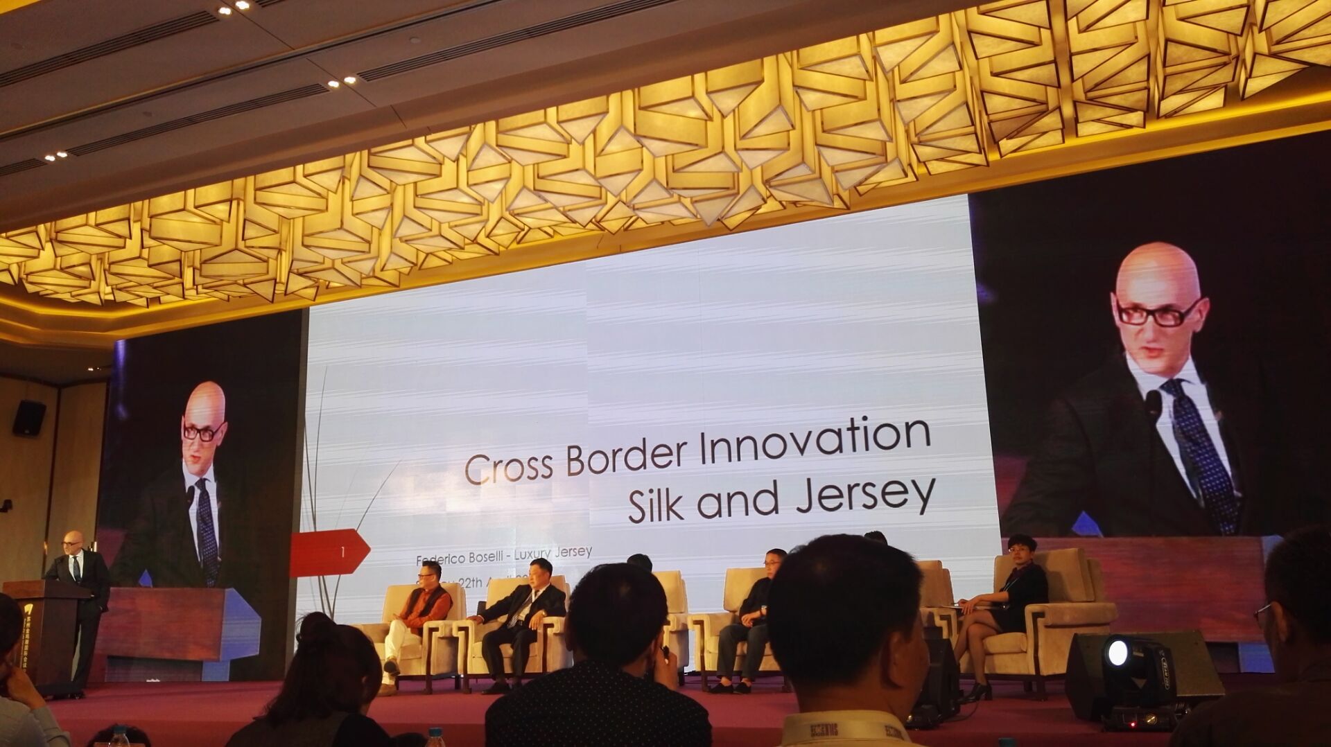 “ Federico Boselli:首先感謝中國絲綢協(xié)會和江蘇省絲綢協(xié)會對我的邀請。紡織行業(yè)在意大利是非常重要的支柱產業(yè)之一。意大利因為需要進行許多紡織材料的進出口,剛剛的幻燈片上也顯示了他們的公司,包括年營業(yè)額都是在各個行業(yè)中屬于領先地位的。他們的產業(yè)鏈也比較獨特,是由許多非常小的公司組成的整個產業(yè)。比如說生產一件服飾的過程,可能在許多情況下是由六個公司來進行的。比如說他們的設計,這是圖案的制造,包括剪裁和熨燙,、質檢和運輸,這些是由六個不同的公司來進行的。最后他們可以達到做出一個非常精良的產品的效果。許多外國的服飾公司也是在意大利進行他們的生產?,F(xiàn)在介紹一下波塞利家族,他們從十七世紀開始就開始在意大利各個地區(qū)進行絲綢產品的制作,歷史已經有四百年之久了。這是現(xiàn)在工廠的照片。公司是在波塞利先生的父親瑞爾波塞利(音)掌管之后開始有一些發(fā)展的。 瑞爾波塞利先生在1963年加入了這個公司,他開始發(fā)展在紡織、印染等各個方面的一些商業(yè)活動。我的父親已經歷任了很多屆的意大利時尚協(xié)會的主席。2009年的時候,瑪瑞亞波塞利集團是由一個私募公司來接管了?,F(xiàn)在這個公司的主要業(yè)務是經營一些奢侈品的紡織面料。它為一些國際性的奢侈品公司來生產一些頂級的面料,他們公司的產品以質量研究和產品的創(chuàng)新而著。這是公司的一些LOGO和合作的廠家。這些是公司的重要客戶,比如說PRADA、GUCCI和各大奢侈品品牌的公司。公司的生產流程是這樣的,首先從意大利的供應商來購買紡織的原材料,這些意大利供應商其實也是從中國進行集中采購的。他們進行編織和染色的手工過程,另外由公司自己進行質量的檢控,來確保面料的材質。這些