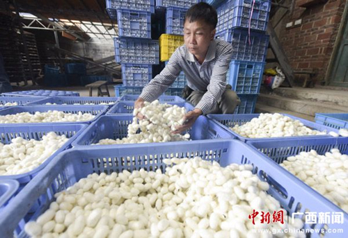 4月26日,廣西羅城仫佬族自治縣一家蠶繭收購站在收購蠶繭。當(dāng)日,該縣首批蠶繭上市,收購價(jià)每公斤36元,與去年同期價(jià)格持平。