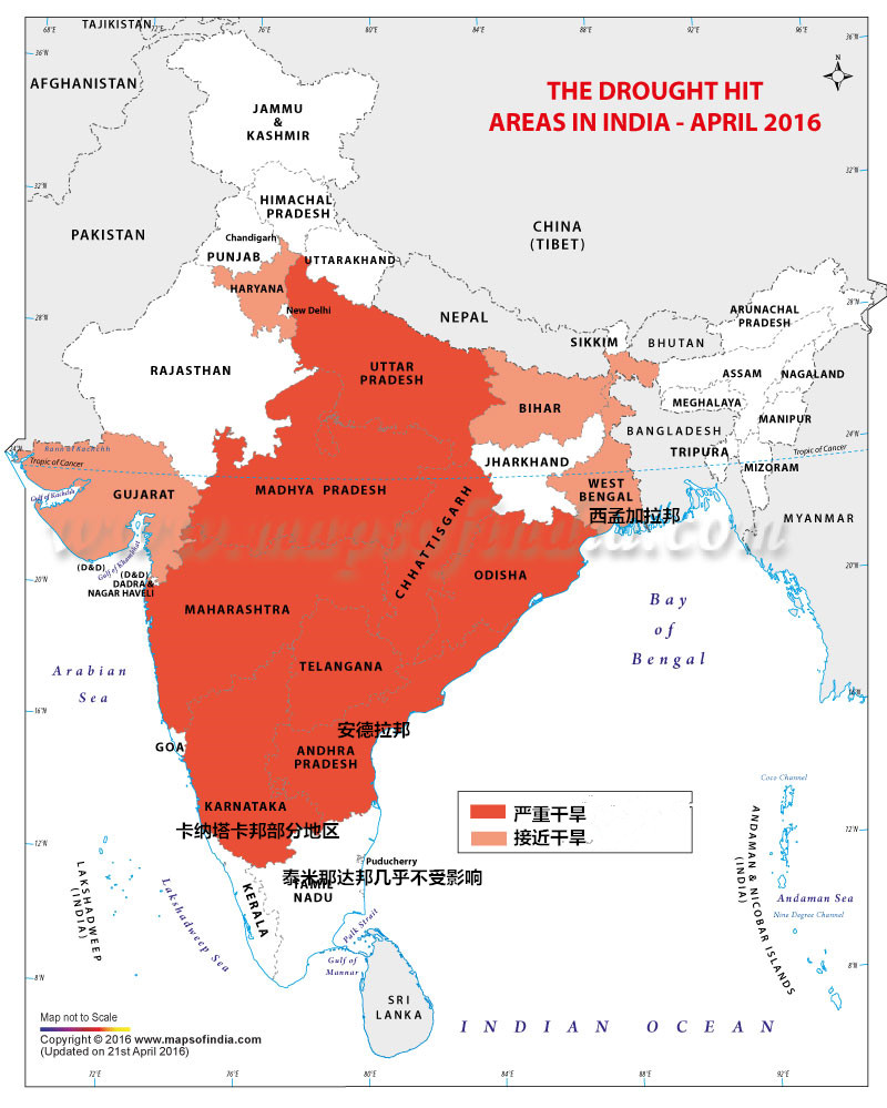 印度桑蠶區(qū)分為傳統(tǒng)產(chǎn)區(qū)和非傳統(tǒng)產(chǎn)區(qū)。傳統(tǒng)產(chǎn)區(qū)包括南部的卡納塔克邦、安德拉、泰米那達(dá)邦,西部的西孟加拉邦等邦,這些是蠶桑主產(chǎn)區(qū);從受災(zāi)地圖可以看出,安德拉邦和卡納塔克邦邦北部地區(qū)為嚴(yán)重干旱地區(qū),西孟加拉邦為接近干旱地區(qū),泰米那達(dá)邦則情況良好。