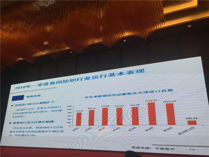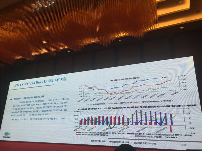 2016全國(guó)產(chǎn)銷形勢(shì)分析會(huì): 中國(guó)紡織工業(yè)聯(lián)合會(huì)信息中心劉欣處長(zhǎng)介紹紡織行業(yè)國(guó)內(nèi)外貿(mào)易形勢(shì)