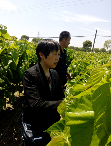 圖為蠶桑技術(shù)人員正在八聯(lián)村17組桑園調(diào)查指導(dǎo)