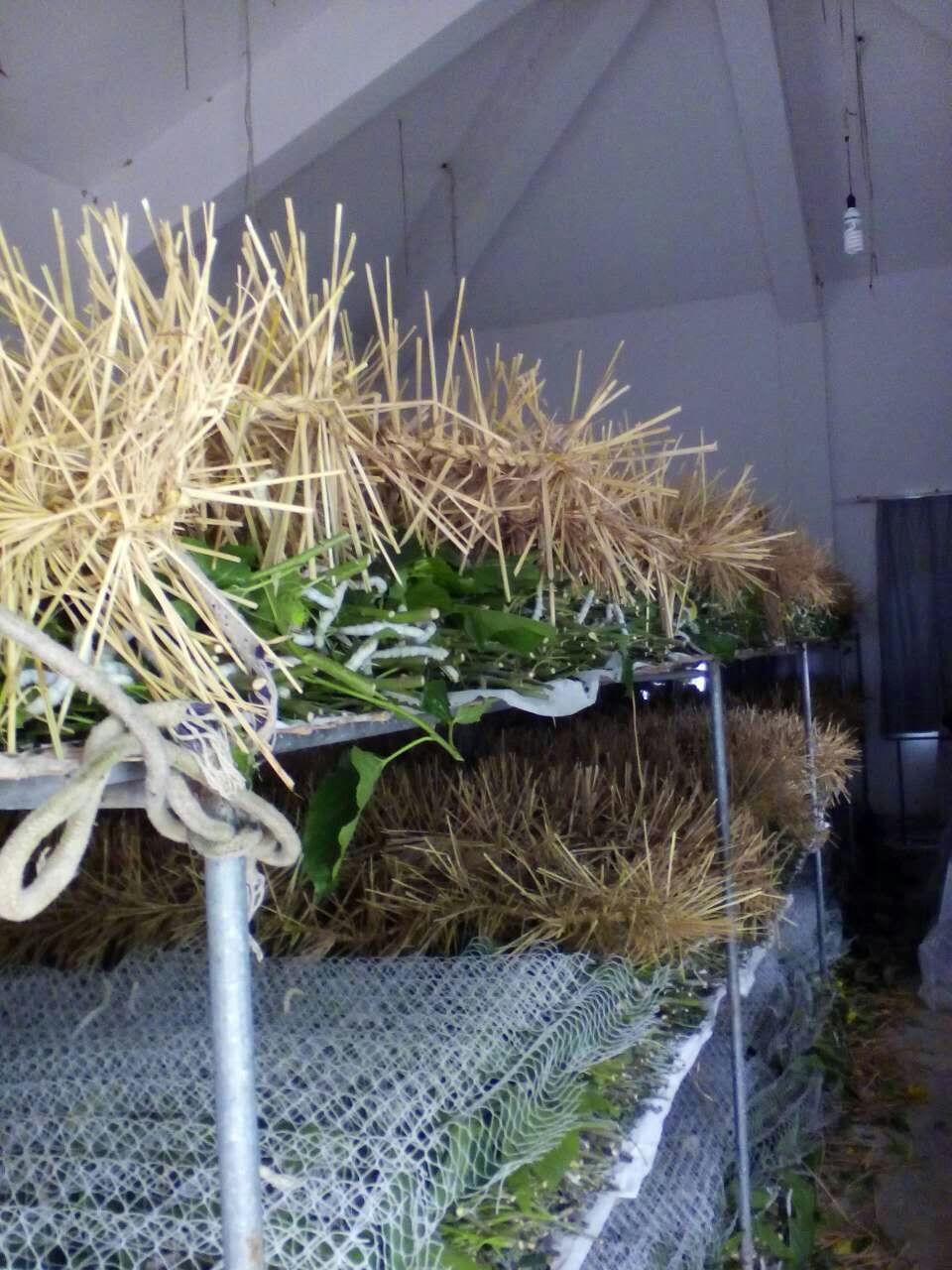 4、如果使用蜈蚣簇,制作蜈蚣簇用的稻草要提早暴曬,避免上簇時(shí)因稻草有毒而使蠶中毒。