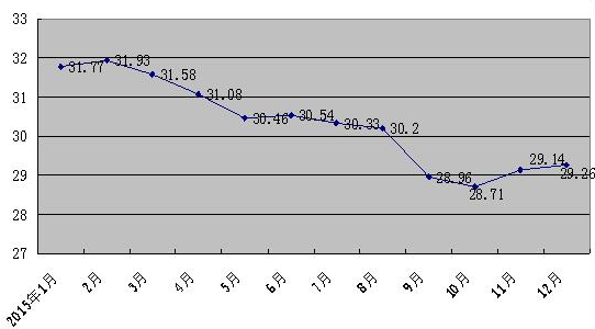 圖 2 2015 年 1-12 月生絲價(jià)格走勢圖