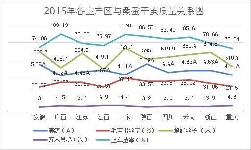 圖6 2015年各主產(chǎn)區(qū)與桑蠶干繭質(zhì)量關(guān)系圖
