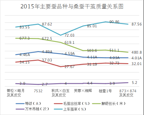 圖8 2015年主要蠶品種與桑蠶干繭質(zhì)量關(guān)系圖