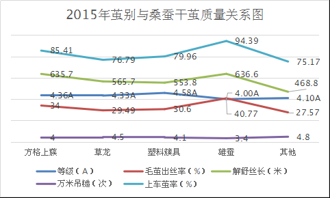 圖10 2015年繭別與桑蠶干繭質(zhì)量關(guān)系圖