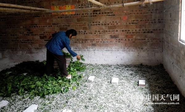 蠶農正在撿桑葉據(jù)了解,一年內環(huán)江可以養(yǎng)八批次的蠶兒,期間當?shù)匦Q農也會根據(jù)桑樹長勢好壞來決定養(yǎng)蠶的張數(shù),較好的蠶種每張產量多能在120斤左右,價格也在20元每斤上下浮動。蠶農如果能在養(yǎng)蠶過程中多細心與下苦工做好桑園的護理,將能提高蠶種張數(shù)量與產量,在一定程度上會增加其年收益。據(jù)河池市氣象臺預計,未來三天環(huán)江以多云天氣為主,氣溫20~30℃,天氣條件仍然比較適合桑蠶生長及田間護理工作。