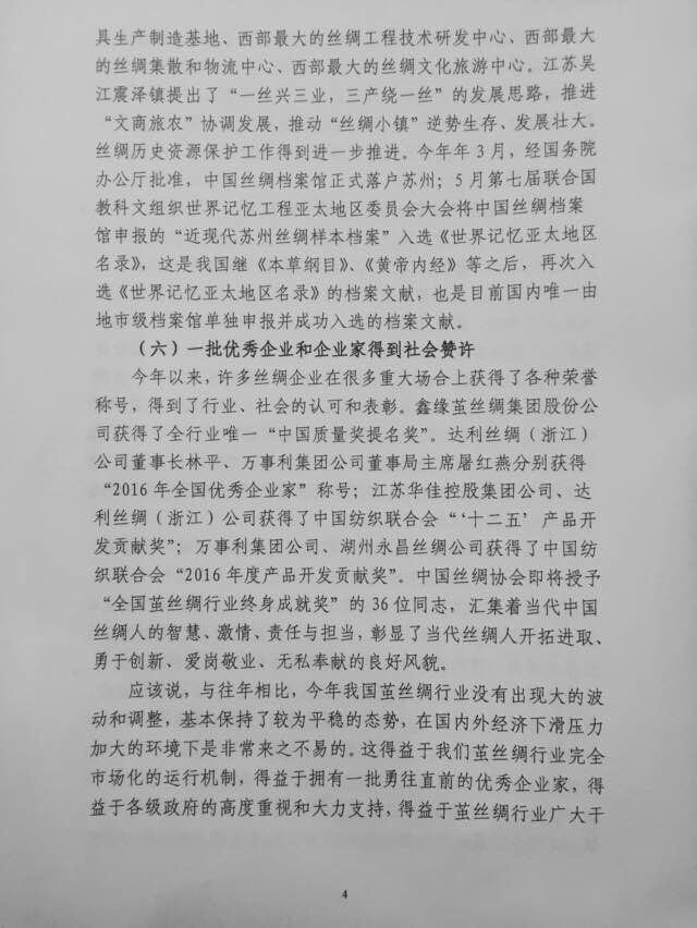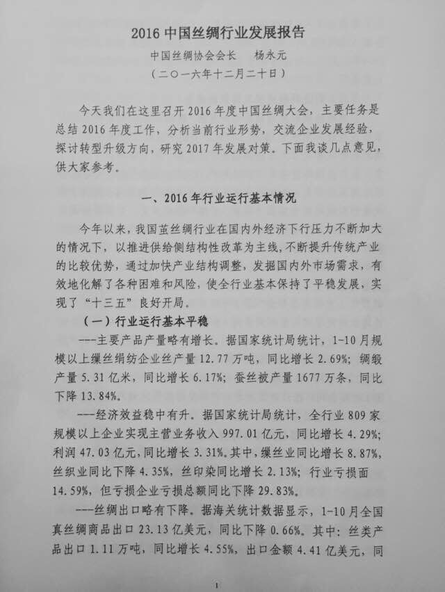 中國絲綢協(xié)會會長楊永元:2016年行業(yè)發(fā)展報告