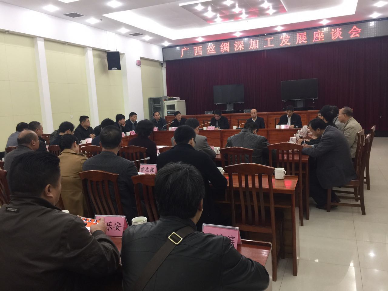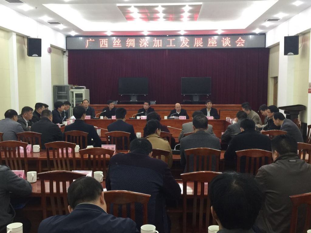 3月8日,廣西繭絲綢行業(yè)協(xié)會(huì)在蒙山縣召開廣西絲綢深加工發(fā)展座談會(huì),來自全28家重點(diǎn)絲綢企業(yè)、科研單位負(fù)責(zé)人以及蒙山縣人民政府、梧州市工信委、蒙山和宜州工業(yè)園區(qū)領(lǐng)導(dǎo)共48人參加會(huì)議,自治區(qū)工信委馬義生總工程師及區(qū)繭絲辦田寧主任、吳青副主任到會(huì)指導(dǎo)。會(huì)議由蘭樹思會(huì)長(zhǎng)主持,自治區(qū)工信委馬義生總工程師在會(huì)上作重要講話。