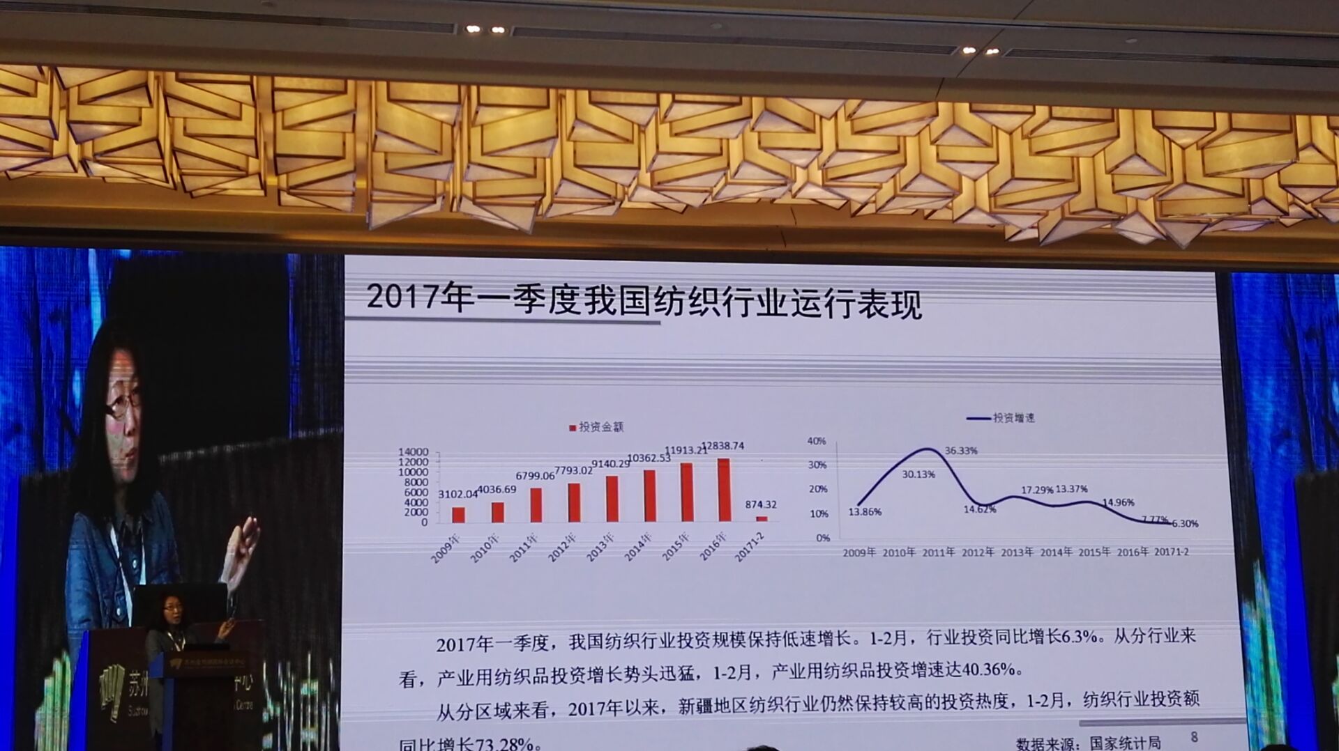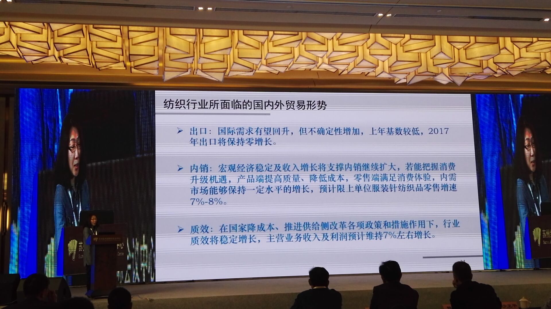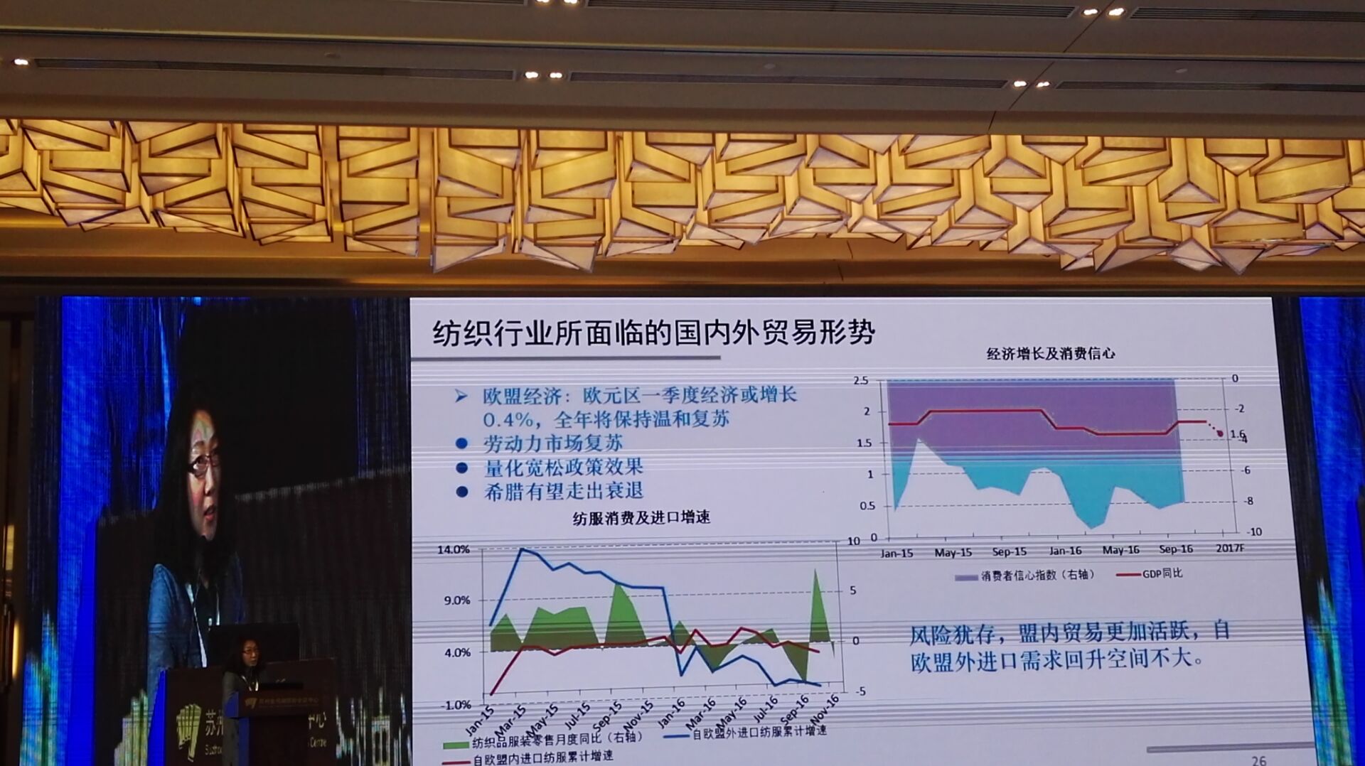 中國紡織工業(yè)聯(lián)合會產(chǎn)業(yè)經(jīng)濟(jì)研究院副院長劉欣介紹紡織行業(yè)國內(nèi)外貿(mào)易形式