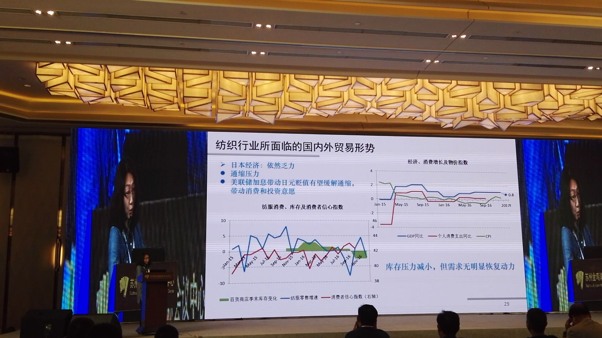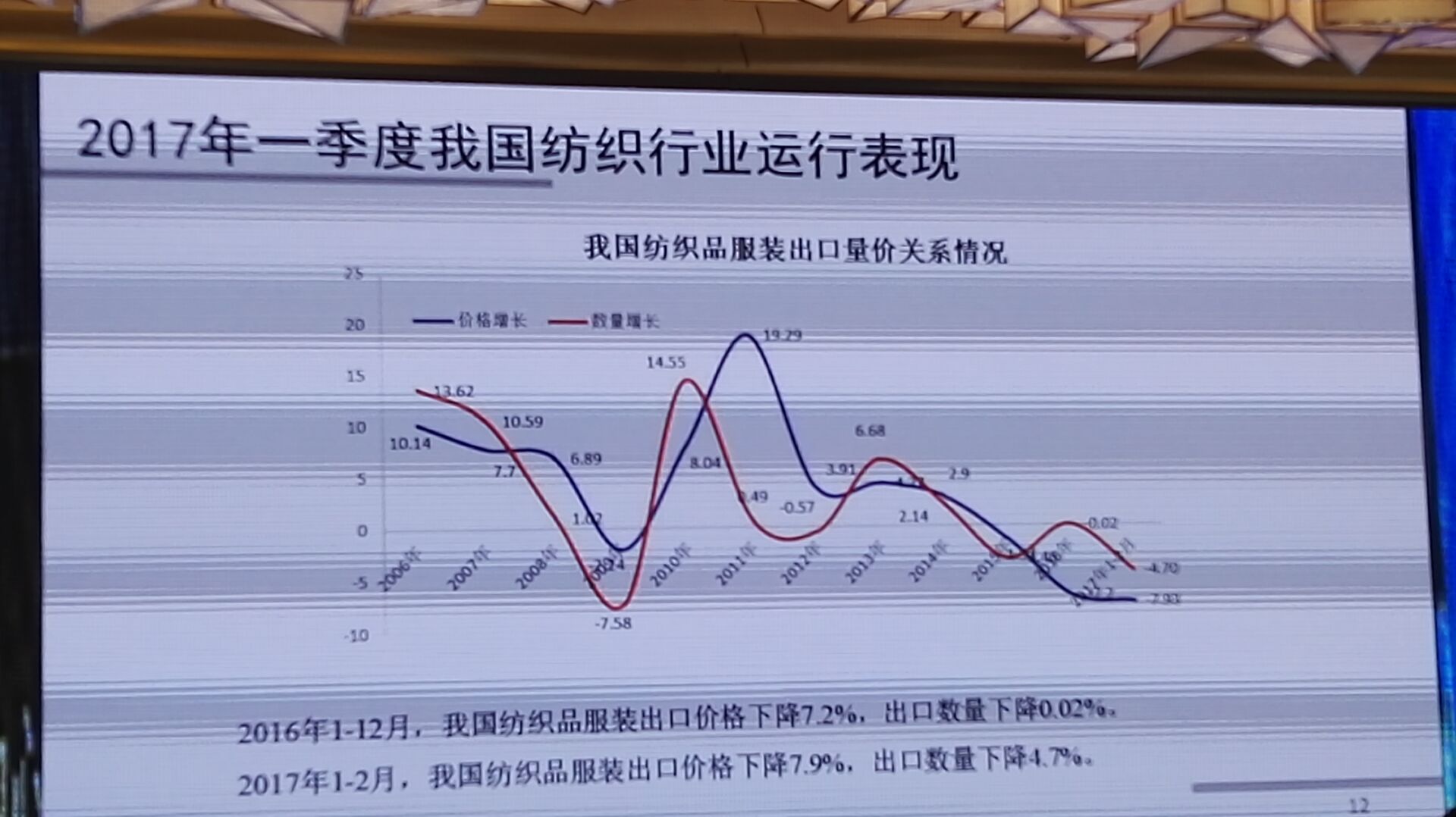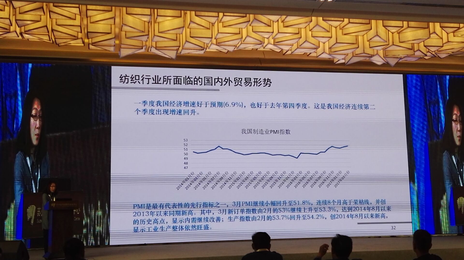 中國紡織工業(yè)聯(lián)合會產(chǎn)業(yè)經(jīng)濟(jì)研究院副院長劉欣介紹紡織行業(yè)國內(nèi)外貿(mào)易形式
