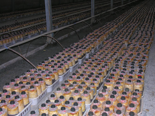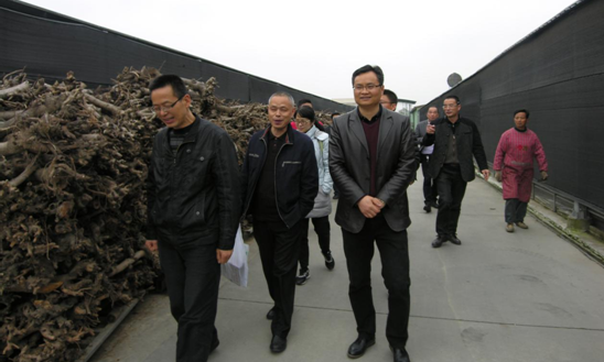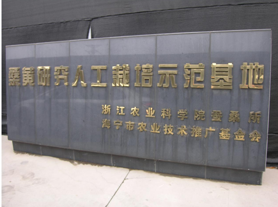 與會人員實地參觀了海寧市袁花鎮(zhèn)紅新村的桑黃人工栽培示范基地,該基地是浙江省農(nóng)科院與海寧市開展院市合作的一項高效生態(tài)循環(huán)項目,由浙江省農(nóng)業(yè)科學(xué)院蠶桑研究所提供桑黃菌種和人工栽培技術(shù),海寧宏欣農(nóng)業(yè)生物科技有限公司利用當(dāng)?shù)刎S富的桑樹枝資源實施規(guī)?;耘?,浙江省蠶桑研究所2名專家常駐海寧,進行關(guān)鍵技術(shù)操作及現(xiàn)場指導(dǎo)。
