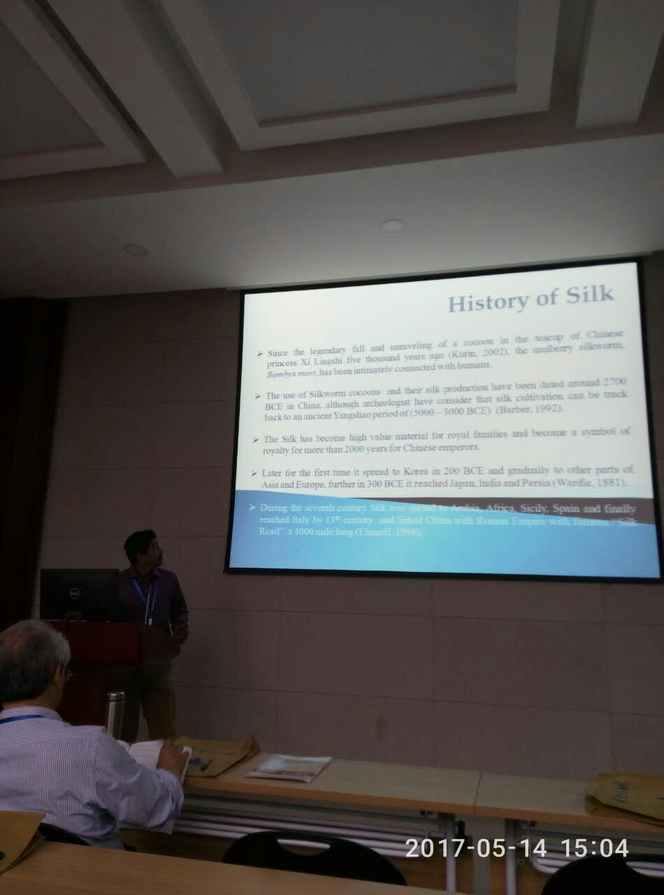 在浙江大學(xué)時(shí)連根教授主持下,魯成教授作了《蠶桑產(chǎn)業(yè)技術(shù)體系》;陳宇岳教授作了《繭絲纖維加工》;李標(biāo)站長(zhǎng)作了《廣西蠶業(yè)》;李龍研究員作了《國際絲綢》;沈衛(wèi)德研究員作了《家蠶生理生化》;錦如所長(zhǎng)作了《家蠶育種》;楊明英教授作了《蠶絲蛋白生物材料》;三位印度專家也作了研究報(bào)告;李建琴教授作了《蠶業(yè)經(jīng)濟(jì)》;徐世清教授作了《彩色蠶絲產(chǎn)業(yè)前景》;秦利教授作了《柞蠶研究進(jìn)展》;鐘伯雄教授作了《家蠶蛋白質(zhì)組學(xué)》。