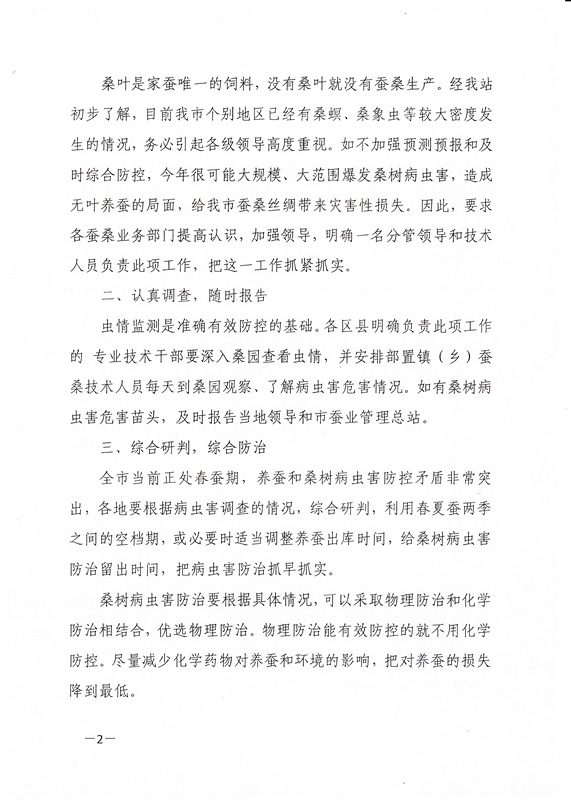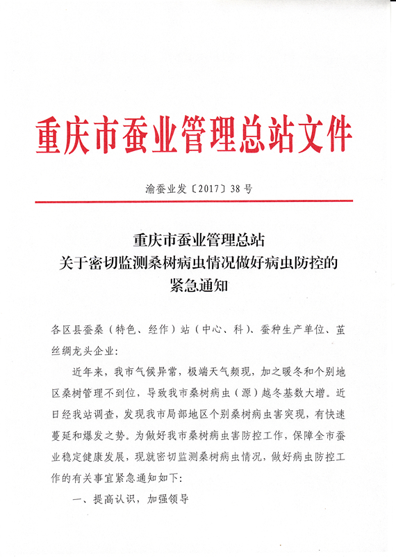 重慶市關(guān)于密切監(jiān)測(cè)桑樹(shù)病蟲(chóng)情況做好病蟲(chóng)防控的緊急通知