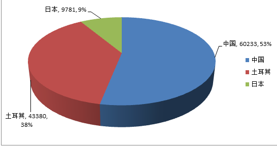 從真絲綢緞凈出口額看,中國、土耳其、日本分別以凈出口60233萬美元、43380萬美元、9781萬美元位列前三名,中國是全球真絲綢緞最大的賣家。