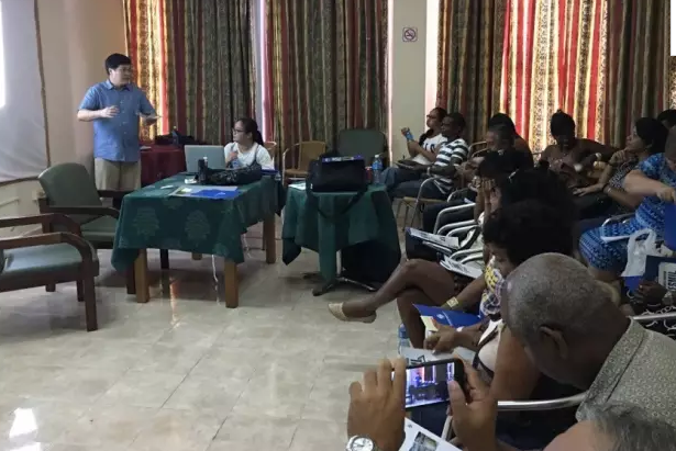(“杭紡機”葉文董事長在古巴哈瓦那給當(dāng)?shù)丶夹g(shù)人員上課)