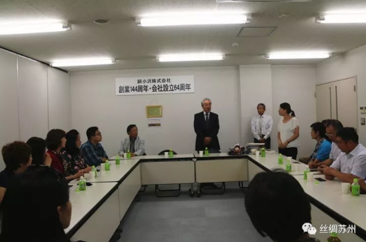 絹之里蠶絲博館的館長和絹小澤面料企業(yè)的社長親自接待,歡迎江蘇省絲綢行業(yè)一行的專家,在絹小沢的面料展示廳社長小林幸夫先生為我們介紹了使用群馬縣的特有蠶絲制成的和服內(nèi)襯,以及在日本獨特的高級品種“小石丸”的基礎上再開發(fā)制成的“新小石丸”面料。