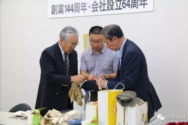通過考察活動,同行的企業(yè)負責人之間也建立起了友誼,蘇州市吳中區(qū)江南絲綢有限公司的趙總、遼寧采逸野蠶絲制品有限公司的田總和蘇州市山水絲綢有限公司的劉總在行程結(jié)束后的反饋中均告訴我們:本次日本考察行的收獲很大,看到了很多國外的絲綢新產(chǎn)品、新技術(shù),但更重要的是同行之間的交流、互動、合作。來自東北的遼寧采逸在本次考察中特地帶上自己生產(chǎn)的柞蠶絲產(chǎn)品,與日本企業(yè)就產(chǎn)品開發(fā)一事進行了交流討論,加深了雙方的了解,對于兩國絲綢企業(yè)間的后續(xù)合作起到很大的推動作用。