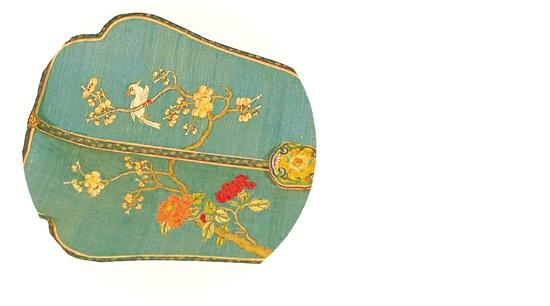 來自南京博物院的雕花木柄緙絲花鳥圖團扇(藍色)值得推薦一看。一寸緙絲一寸金,那可是“絲織品中的愛馬仕”啊。