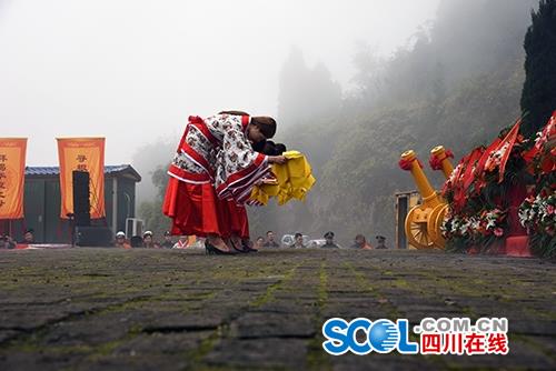 四川在線消息(任安輝 記者 李沅衡)擊鼓、鳴炮,迎八方來(lái)客;祭拜、奏樂(lè),祈福佑中華。11月3日,由中國(guó)先秦史學(xué)會(huì)、中國(guó)倫理學(xué)會(huì)、中華嫘祖文化促進(jìn)會(huì)、省嫘祖文化促進(jìn)會(huì)主辦,鹽亭縣嫘祖文化開(kāi)發(fā)研究會(huì)承辦的2017(丁酉)年中國(guó)(鹽亭)嫘祖故里酬蠶節(jié)民間祭祖儀式在鹽亭嫘祖陵祭祀廣場(chǎng)舉行。400余名海內(nèi)外華夏兒女齊聚嫘祖陵,拜謁華夏母親,祈福中華民族偉大復(fù)興。