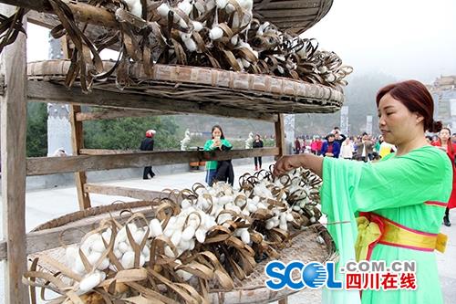 據(jù)介紹,嫘祖是黃帝的元妃,是蠶桑文化和絲綢文明的發(fā)明創(chuàng)造者。鹽亭是嫘祖的出生地和歸葬地,絲綢之源。為展示絲綢文化,祭祖儀式還舉辦了多項(xiàng)民俗文化展演。風(fēng)鑼鼓、繅絲技藝展演、嫘祖巡游、劃旱船、龍舞依次登臺(tái)表演,栽桑、養(yǎng)蠶、繅絲、編絹等技術(shù)展示,再現(xiàn)了幾千年前嫘祖給百姓們傳授技藝的場(chǎng)景。