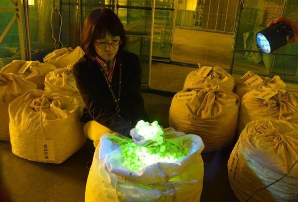 自上個(gè)月群馬縣內(nèi)養(yǎng)蠶農(nóng)戶培育的轉(zhuǎn)基因桑蠶所結(jié)的繭首次開(kāi)始出貨,已經(jīng)有大約170千克的熒光蠶繭被送到了群馬縣蠶絲技術(shù)中心。