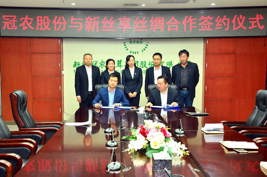 12月4日,新疆冠農(nóng)果茸集團(tuán)股份有限公司董事長郭良與新疆新絲享絲綢產(chǎn)業(yè)有限公司董事長陳果,在冠農(nóng)大廈11樓會(huì)議室簽訂了新疆冠農(nóng)有機(jī)農(nóng)業(yè)開發(fā)有限公司(以下簡稱“冠農(nóng)有機(jī)農(nóng)業(yè)公司”)增資擴(kuò)股項(xiàng)目合作協(xié)議。協(xié)議約定新絲享絲綢公司以貨幣資金方式增資6000萬元,持有冠農(nóng)有機(jī)農(nóng)業(yè)公司不低于85%的股份,在新疆生產(chǎn)建設(shè)兵團(tuán)第二師鐵門關(guān)市和碩墾區(qū)合作建設(shè)萬畝蠶桑種植桑蠶養(yǎng)殖絲綢基地。
