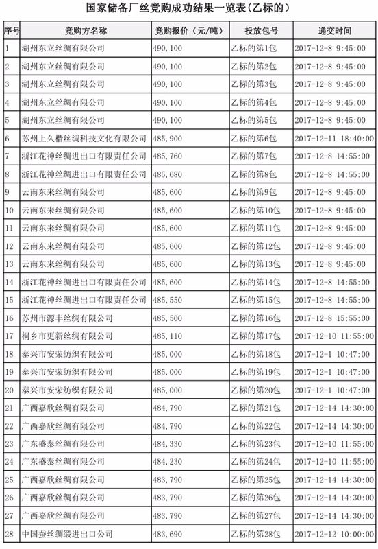 國家儲備廠絲競購成功企業(yè)名單