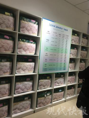 "我看位置也蠻偏的,但也沒多想。"王小姐說,在簡單參觀展廳后,工作人員就把大家都帶到了一個更小的展廳,開始介紹由他們自己工廠生產(chǎn)的四件套和蠶絲被。"工作人員說的很好聽,還現(xiàn)場教大家辨別真假蠶絲。我當(dāng)時看上了一條 2980元的四件套。"王小姐說,為了推銷,導(dǎo)購員告訴她只要購買價值 2980元的四件套,就另外再送一件價值 1980的真絲四件套,和一條價值 980元 4斤的蠶絲被。