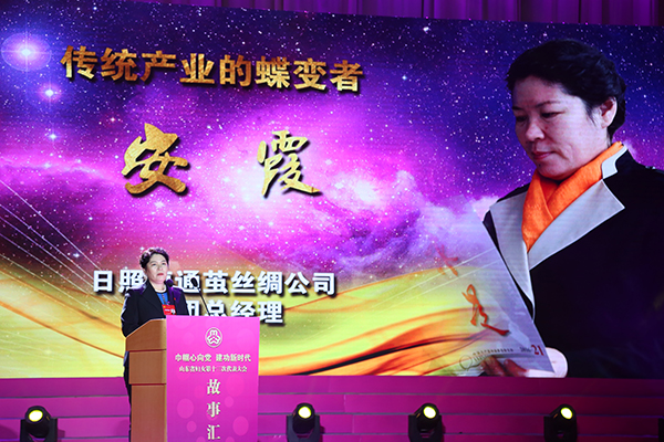 莒縣海通繭絲綢有限公司總工程師安霞分享了一位巾幗掌門人將絲綢文化融入文化工業(yè)旅游,使企業(yè)在競(jìng)爭(zhēng)的大潮中鳳凰涅槃、破繭成蝶的故事。