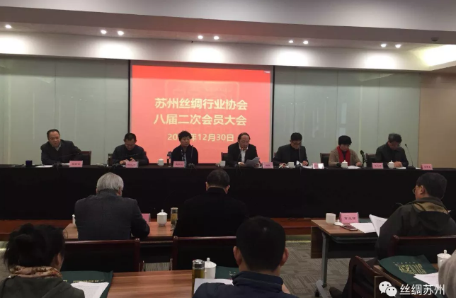 12月30日,“蘇州絲綢行業(yè)協(xié)會八屆二次會員大會”在蘇州絲綢博物館二樓會議室舉行,參加會議的有蘇州絲綢行業(yè)協(xié)會會長楊偉、蘇州絲綢行業(yè)協(xié)會常務(wù)副會長李民中、副會長魏保信、戚秋蘭、潘志娟、李德喜和其他各會員單位代表。