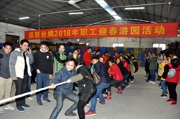 1月28日,為豐富員工的業(yè)余生活,營(yíng)造歡樂(lè)和諧的氛圍,廣西嘉聯(lián)絲綢股份有限公司舉辦了一次豐富精彩的2018年職工迎春游園活動(dòng)?;顒?dòng)項(xiàng)目設(shè)有拔河比賽、套圈圈、幸運(yùn)轉(zhuǎn)盤(pán)、擲飛鏢、投乒乓球、撈魚(yú)等精彩內(nèi)容。