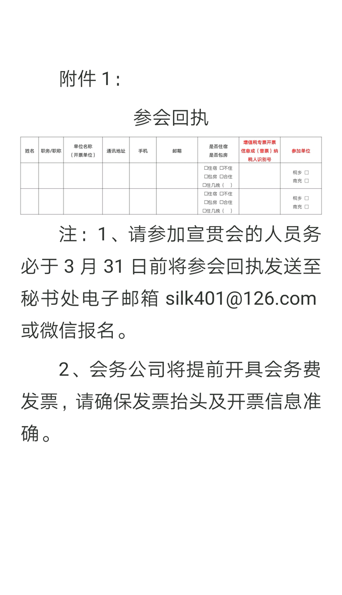 1、報(bào)名方式;填寫報(bào)名回執(zhí),請務(wù)必于3月31日前通過電子郵件