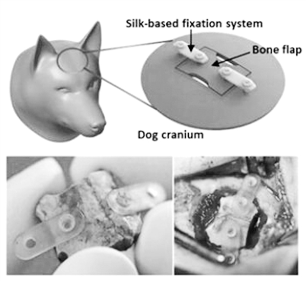 該研究提出一種新型的基于天然蠶絲蛋白的顱骨固定系統(tǒng)(包括蠶絲蛋白骨釘和連接片),在長達(dá)12個(gè)月的臨床前犬類動(dòng)物實(shí)驗(yàn)中顯示了良好的生物兼容性,以及優(yōu)良的顱骨固定和再連接作用。