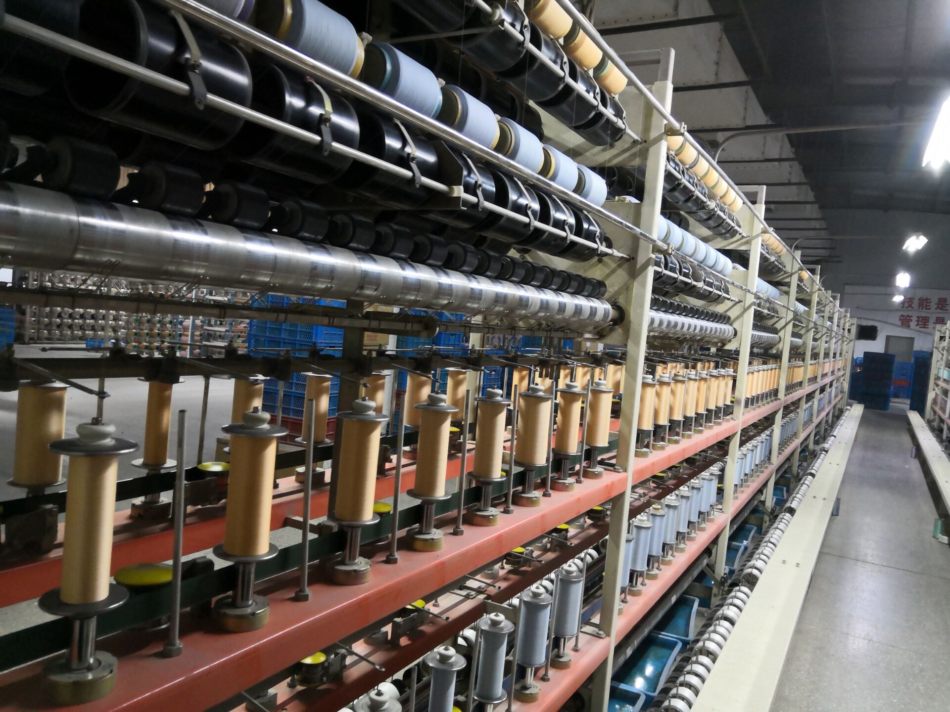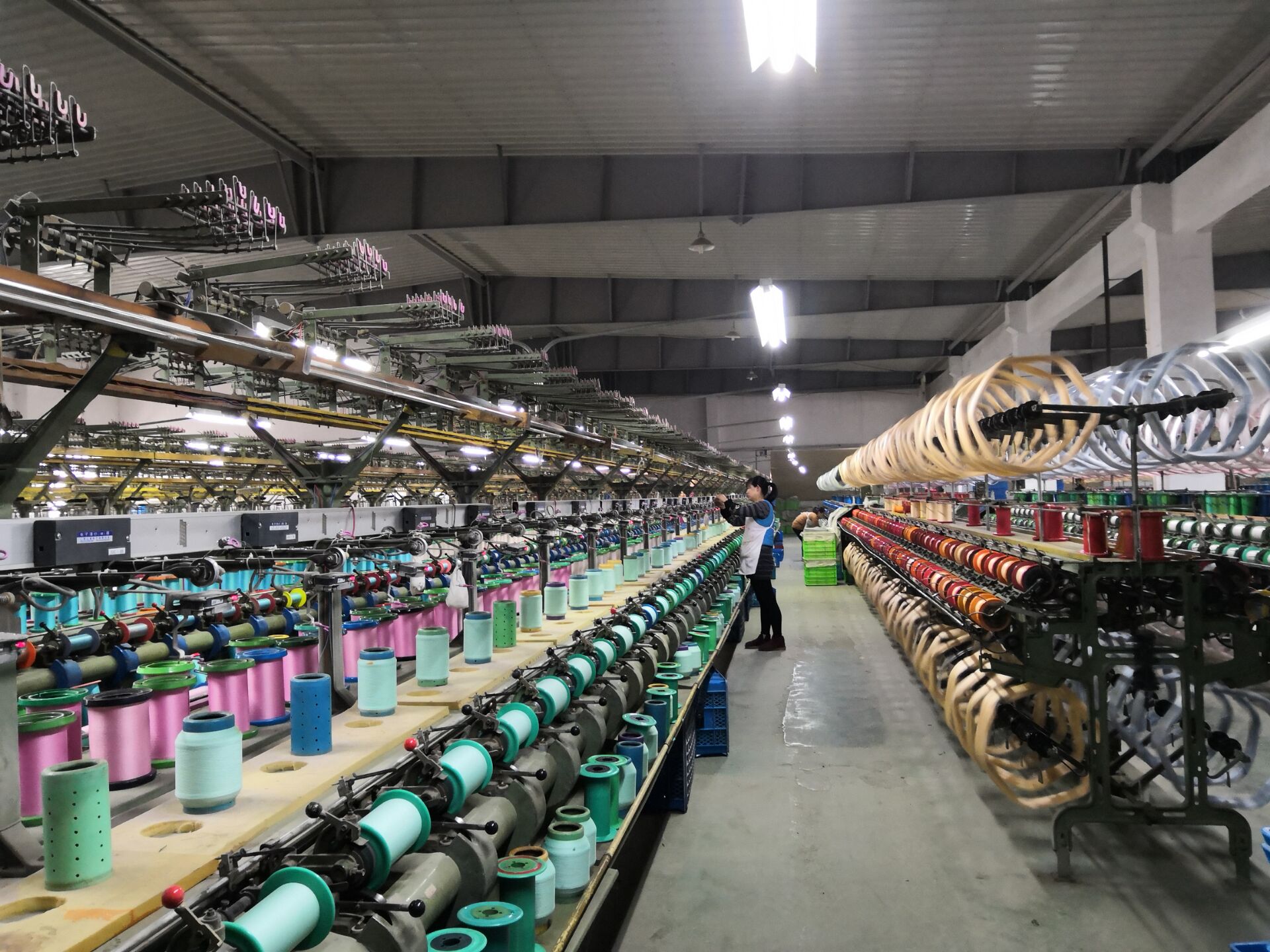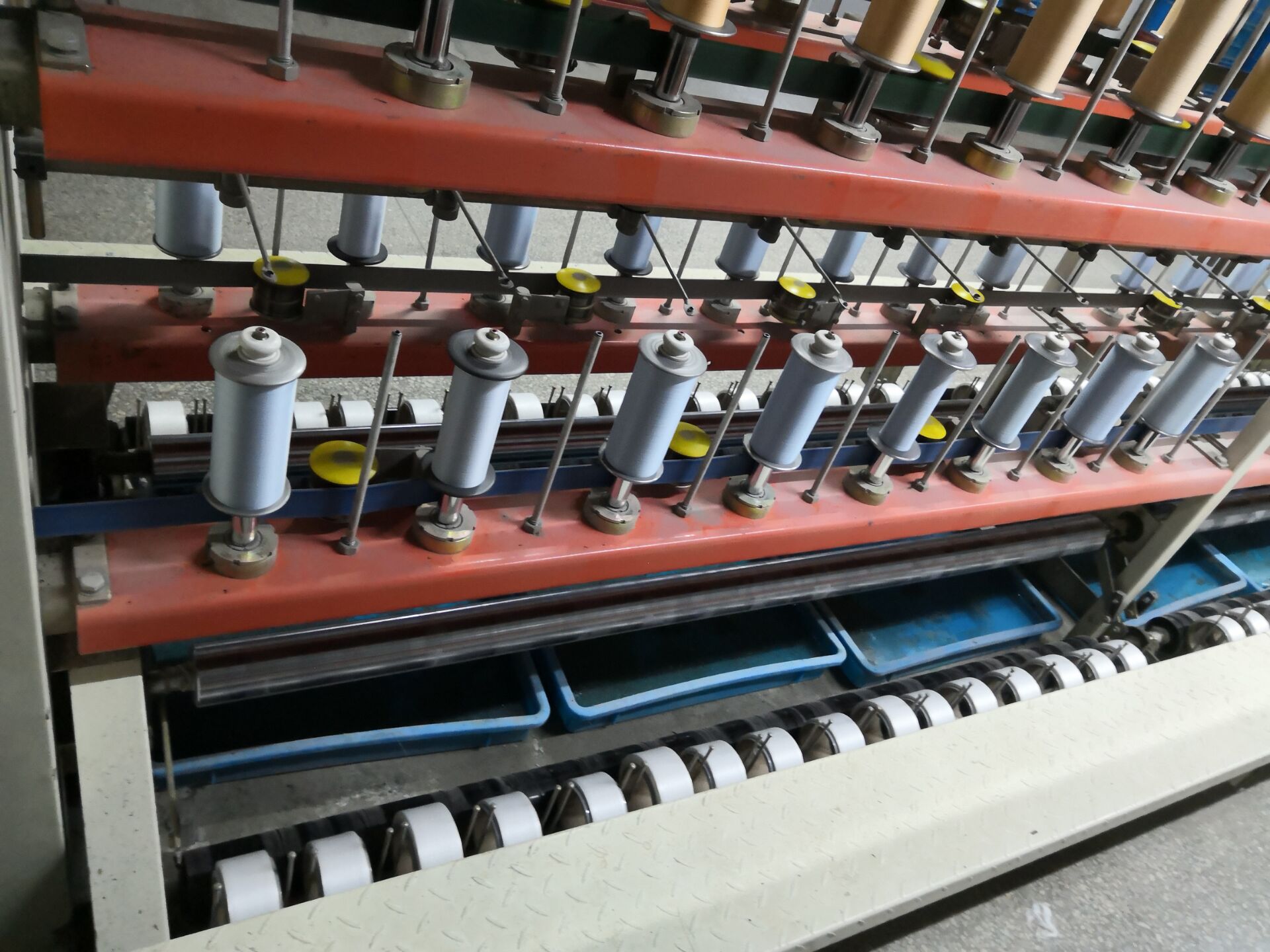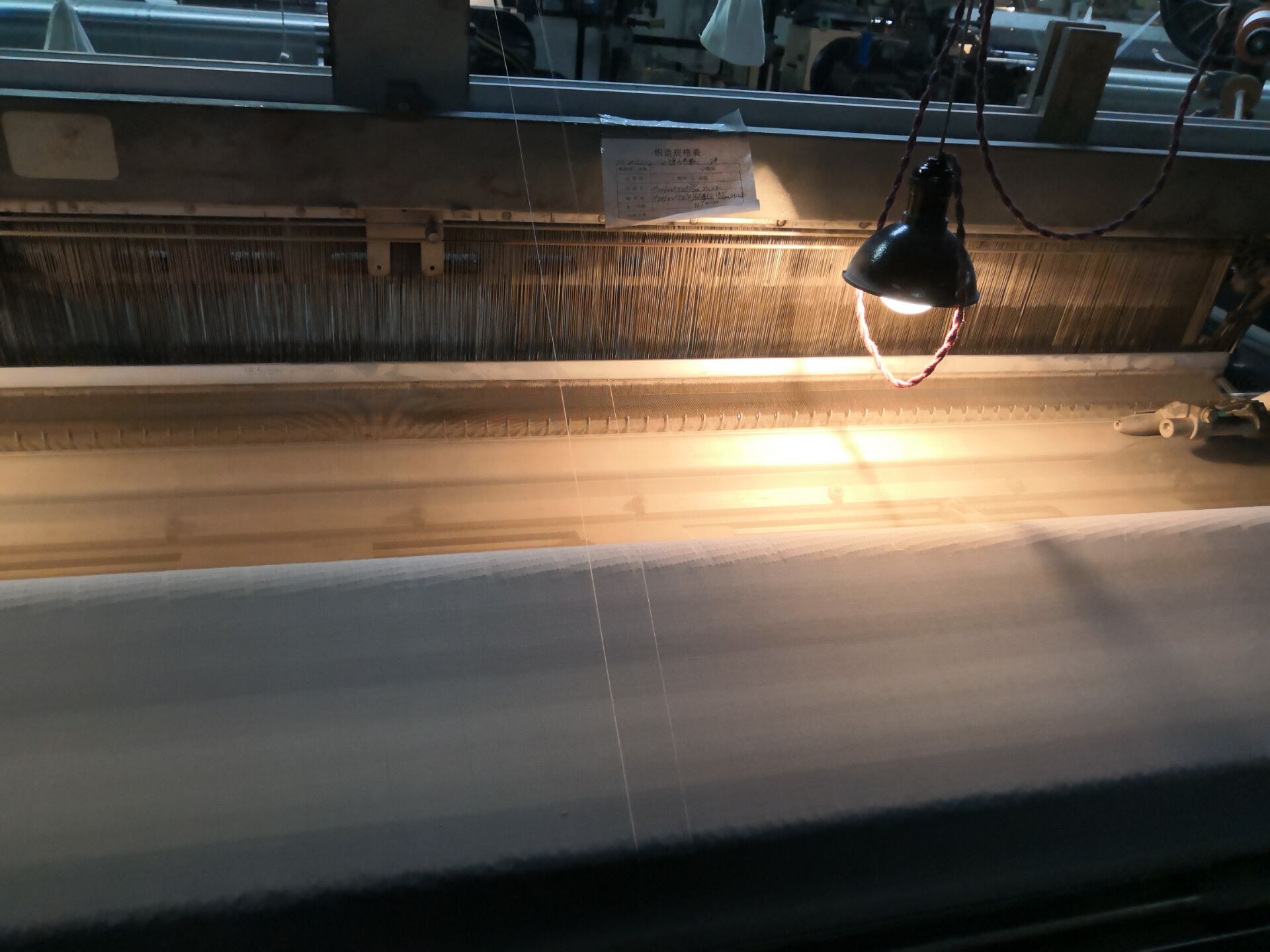 百忙之中,顧總領(lǐng)著我們走進(jìn)車間,36臺(tái)劍桿織機(jī)在一刻不停地運(yùn)轉(zhuǎn)著。談起絡(luò)絲、并絲、捻絲、織造等工序,顧總是如數(shù)家珍。據(jù)顧總介紹,位于長興縣的公司還有20臺(tái)劍桿織機(jī),今年開機(jī)率也是百分之百。今年公司生產(chǎn)的綢緞品種仍延續(xù)去年的熱點(diǎn),主要是雙縐、喬其、彈力緞等主流品種,部分為訂單生產(chǎn),部分為自營生產(chǎn)。