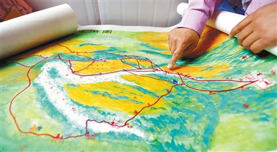 本報(bào)訊 (首席記者 張佳) 絲綢之路在中華民族的歷史長(zhǎng)卷中無疑是濃墨重彩的一筆,但您知道歷史上的絲綢之路究竟走過哪些地方嗎?3月28日,中國(guó)社會(huì)科學(xué)院考古研究所西安唐長(zhǎng)安城考古隊(duì)高級(jí)技師譚崇禮向記者展示了一幅他親手繪制的絲綢之路導(dǎo)游圖。