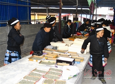 進(jìn)入3月以來,在廣西南丹縣里湖瑤族鄉(xiāng)的集市上,白褲瑤同胞正在銷售一盒盒獨(dú)特的蠶寶寶,十分引人注目。