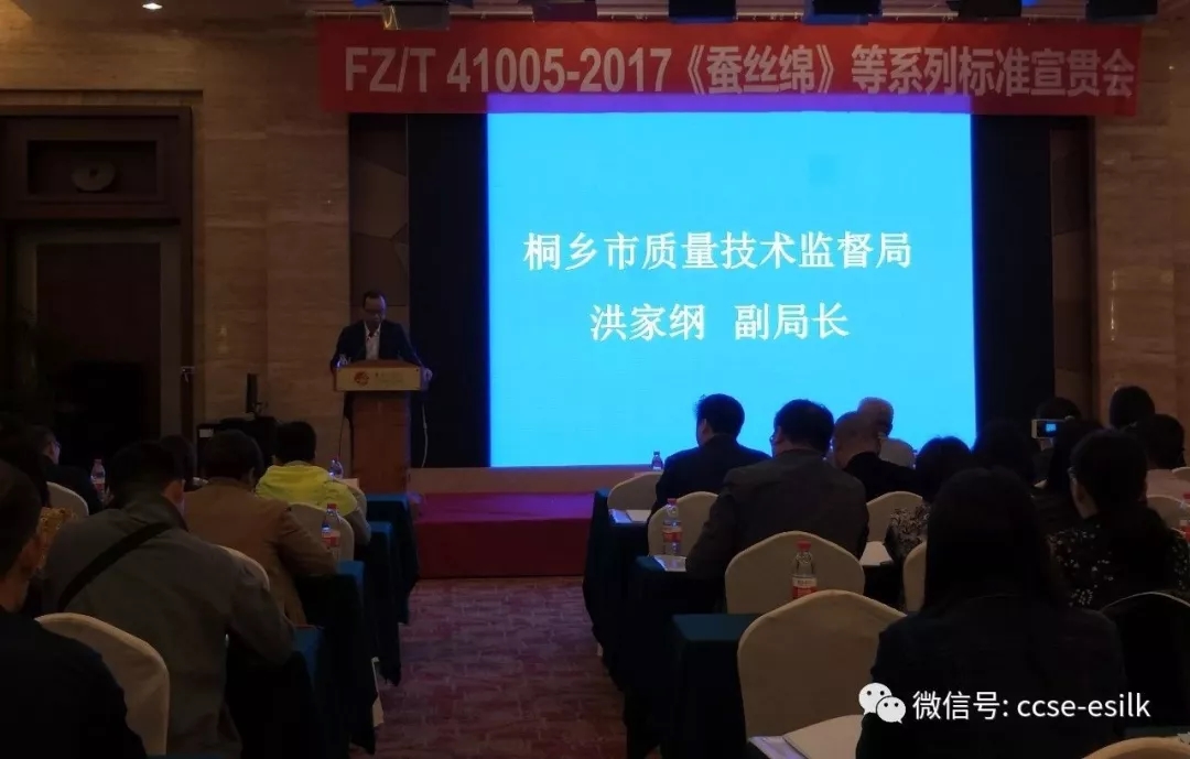 由全國絲綢標準化技術(shù)委員會主辦的《蠶絲綿》等標準桐鄉(xiāng)宣貫會于今日在桐鄉(xiāng)市東方大酒店成功舉辦。四樓會議室內(nèi)濟濟一堂,來自浙江、江蘇、廣東、云南等省市區(qū)的200余名絲綿相關(guān)企業(yè)代表和檢測單位人員參加了會議。