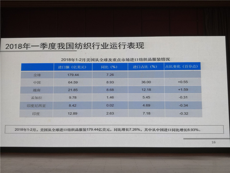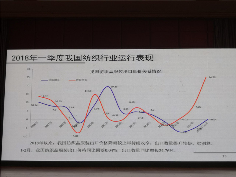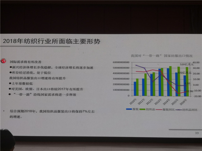 中國紡織工業(yè)聯(lián)合會產(chǎn)業(yè)經(jīng)濟研究院副院長劉欣介紹2018年紡織經(jīng)濟形勢