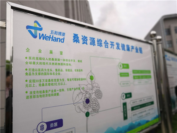 參觀完第一站,代表們來到第二站廣西五和博澳藥業(yè)有限公司,廣西五和博澳藥業(yè)有限公司成立于2014年,是一家以高端生物醫(yī)藥為切入點、保健品、化妝品和食品為一體的桑資源綜合深度開發(fā)的生物科技創(chuàng)新型企業(yè)。