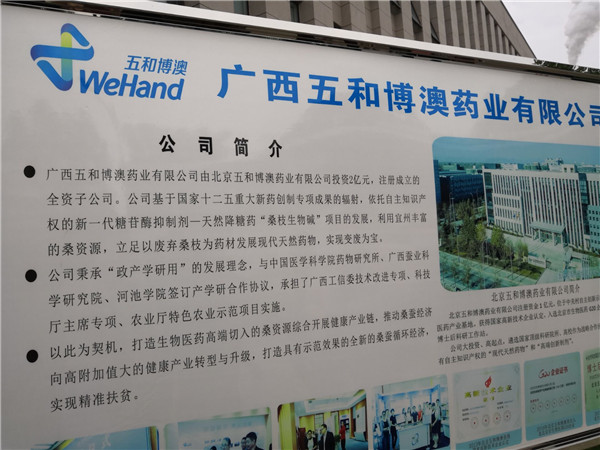 廣西五和博澳依托母公司強大的資金和科研實力,與國家級科研院所“中國醫(yī)學(xué)科學(xué)院藥物所”合作開發(fā)現(xiàn)代天然抗糖尿病中藥“桑枝生物堿”,并與廣西蠶業(yè)科學(xué)研究院、河池學(xué)院簽訂了產(chǎn)學(xué)研戰(zhàn)略合作協(xié)議。從桑樹的種植培育,到天然活性物質(zhì)提取,以及桑資源綜合開發(fā),構(gòu)建了一個全產(chǎn)業(yè)鏈立體開發(fā)的創(chuàng)新科研模式;為后續(xù)桑葉、桑枝、桑椹等桑資源綜合開發(fā)系列產(chǎn)品提供強大科研支撐。