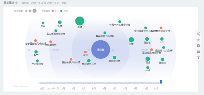 圖3 2016年搜索“蠶絲被”進(jìn)入需求圖譜“強(qiáng)”范圍內(nèi)的內(nèi)容