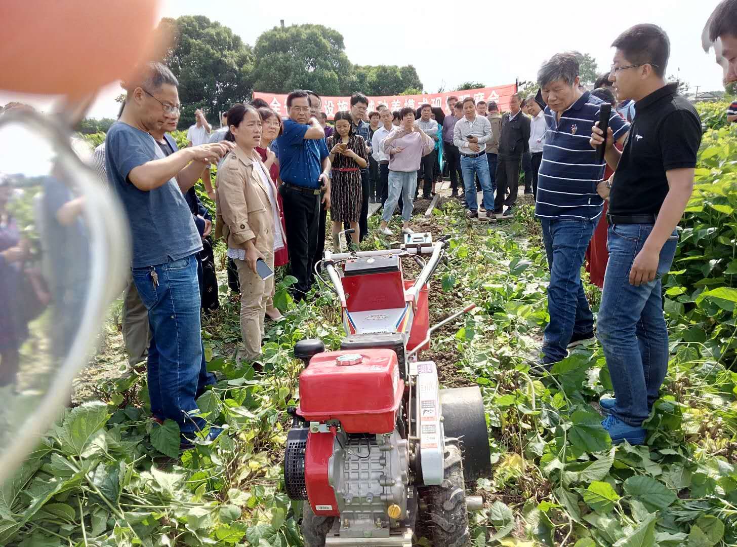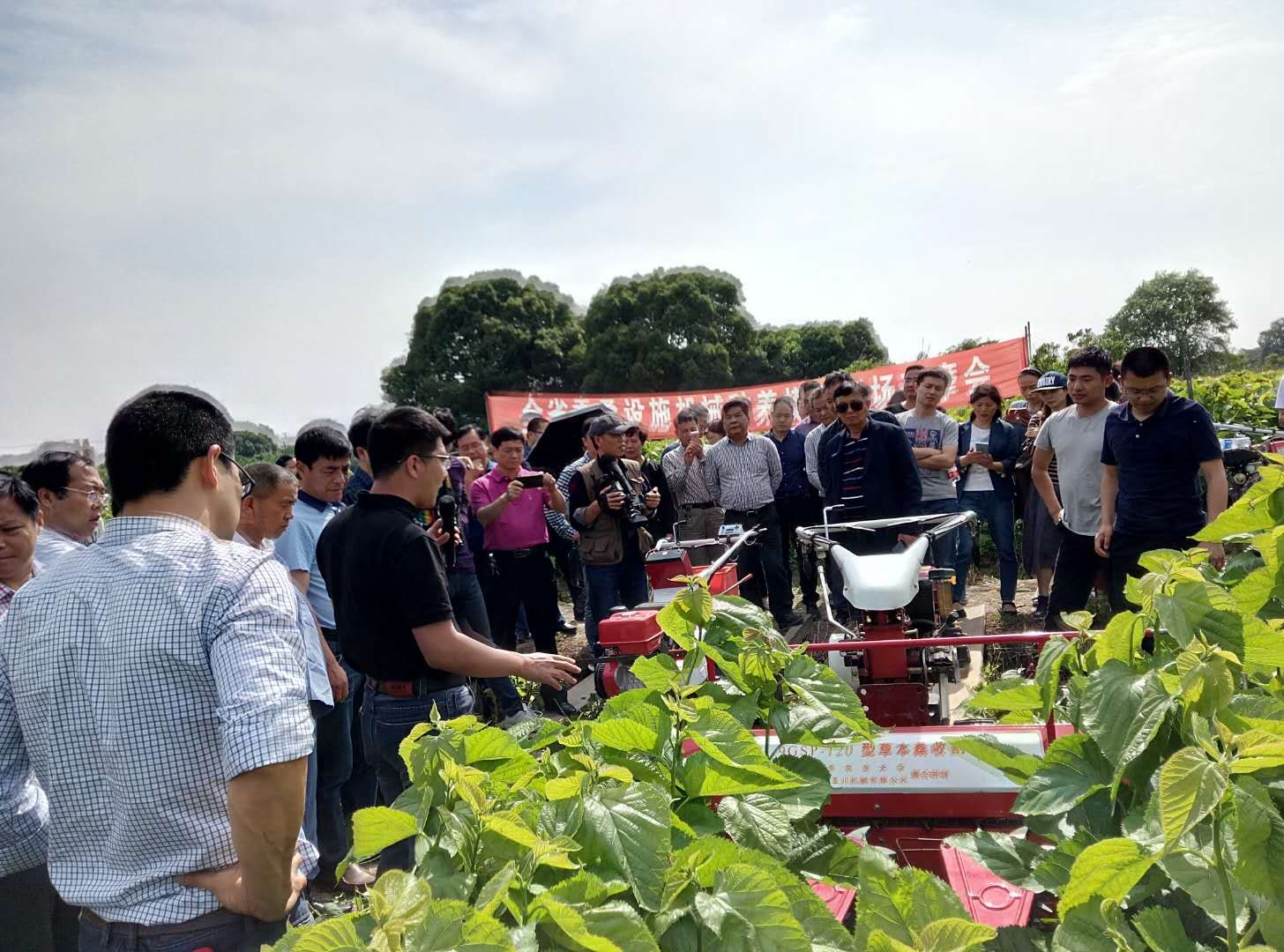 在雜交桑機(jī)械化收割現(xiàn)場,山東農(nóng)業(yè)大學(xué)教授現(xiàn)場講解了雜交桑機(jī)械化收割情況,操作員進(jìn)行了收割操作,不同型號的收割機(jī)快速地將桑條割下,其工效十顯著。